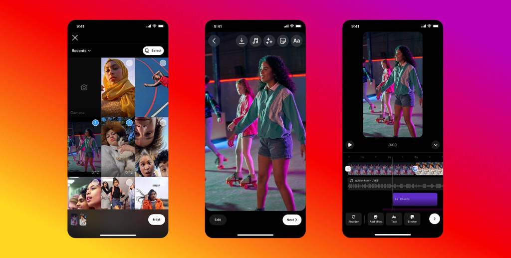 A ideia aqui é facilitar a edição de Reels no próprio Instagram, reunindo videoclipes, áudio, adesivos e texto em uma tela de edição unificada. A atualização torna mais fácil alinhar e cronometrar os elementos para os momentos certos de uma forma mais visual.